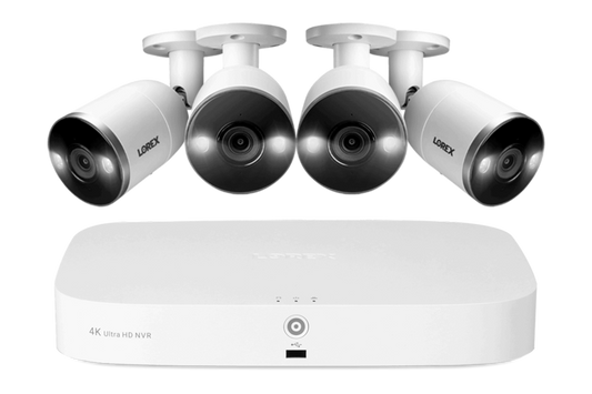 Nocturnal Series Lorex 4K (32 Camera Capable) 8TB Wired NVR System with Nocturnal 3 Smart IP Bullet Cameras Featuring Listen-In Audio and 30FPS Recording