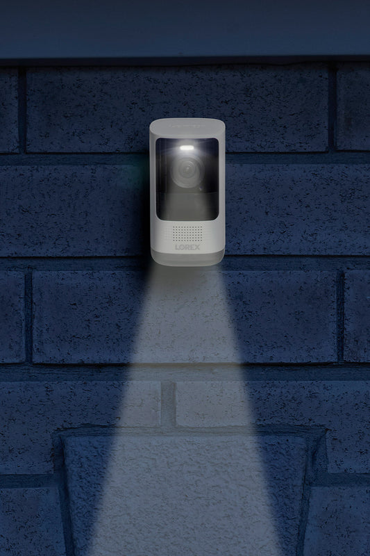 View Product InformationLorex 4K Spotlight Indoor/Outdoor Wi-Fi 6 Security Camera with Smart Security Lighting (32GB)