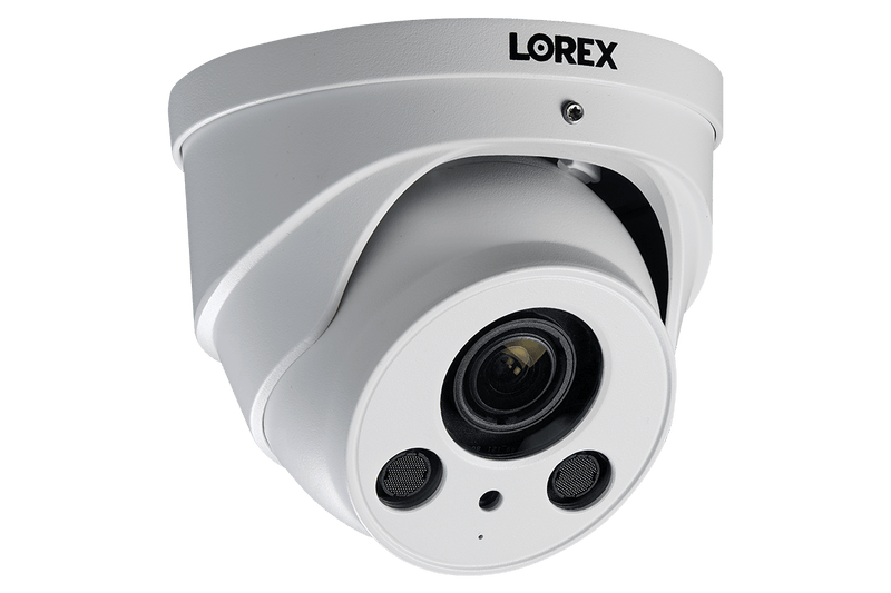The LNE8964AB nocturnal IP dome security cameras include a unique zoom lens, otherwise known as a motorized varifocal lens, that enables remote customization of your viewing area (and focus). Focus on a small area in astonishing detail thanks to the 4× optical zoom or survey a larger scene for maximum coverage. These adjustments can be easily made with your N881 NVR or through the Lorex Cloud app.