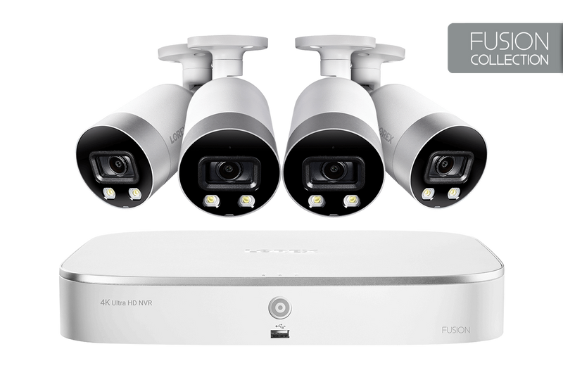 The next generation of security monitoring is here. With industry-leading 4K (8 megapixel) resolution, smart deterence and motion detection, this security camera system from Lorex will bring a whole new level of detail to your security monitoring. It includes our outstanding 4K, 8-channel N841 Series Smart Detection Network Video Recorder (NVR) and four 4K Smart Deterrence Security Cameras. As part of the Lorex Fusion™ collection, you can add up to 2 Lorex Wi-Fi products such as, Wi-Fi cameras, doorbells, sensors, and floodlights. If you are looking to protect your home, small business or commercial property, this powerful security camera system will have you covered.