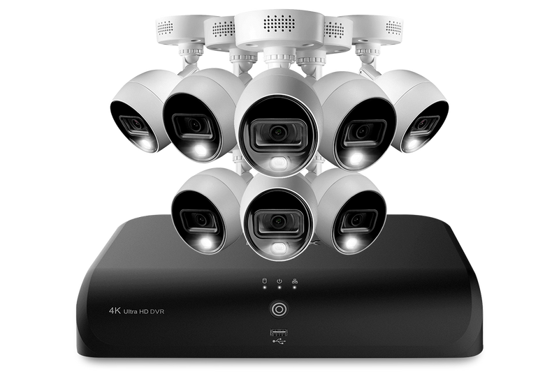 Protect what matters most with this 8-camera 4K DVR security system from Lorex. Each camera features Active Deterrence LED motion lights and warning sirens designed to stop events before they happen. They also feature 4K resolution recording, Color Night Vision, 105° wide angle lenses, and IP67-rated exteriors to ensure top quality security video around-the-clock. The DVR features its own secure local storage, which means there are no monthly fees, and is easily connected to the Lorex app for convenient on-the-go remote connection.