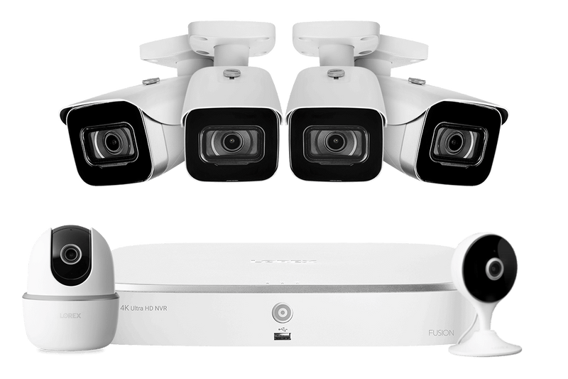 Lorex Fusion 4K 16-Channel (8 Wired + 8 Wi-Fi) 2TB NVR System with 4 IP Bullet Cameras, 1 Pan-Tilt Camera and 1 Indoor Wi-Fi Camera