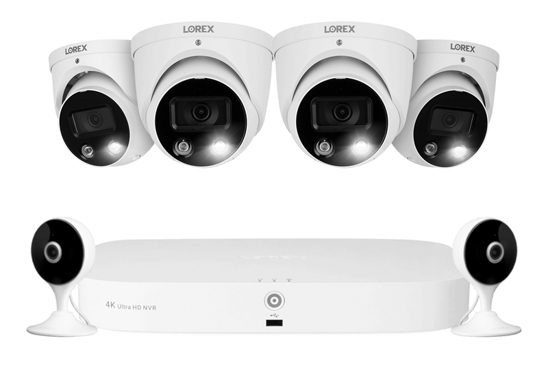 This Fusion NVR system is united by our Lorex app, which can "fuse" the included wired 4K security cameras and indoor Wi-Fi security cameras on the same NVR!