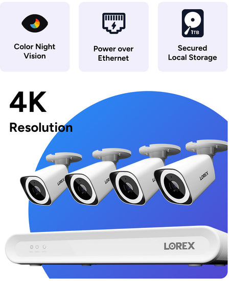 Lorex Connect 4K 8-Channel Wired NVR System with Four 4K IP Bullet Security Cameras - 1TB