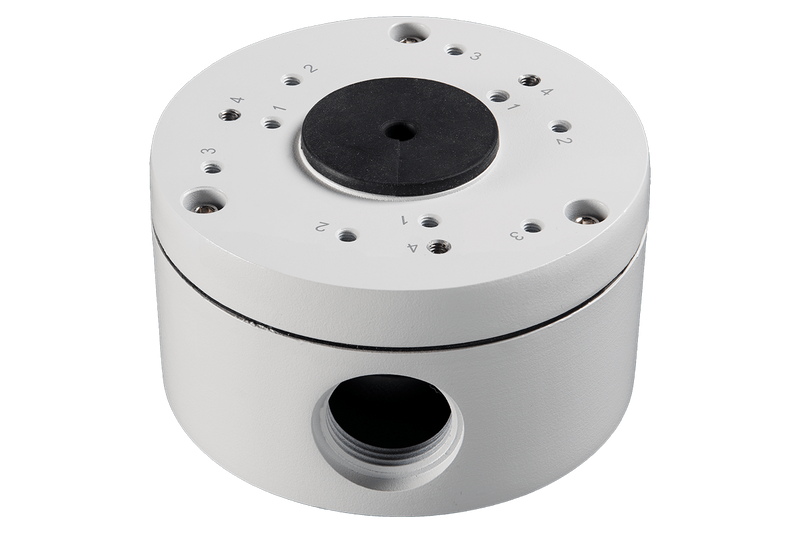 Meet your installation needs with this weatherproof tri-axel security mounting junction box. It allows you to conveniently hide your security camera cables from view and protect them from vandalism while also providing easier access to cabling connections without having to unmount your camera.